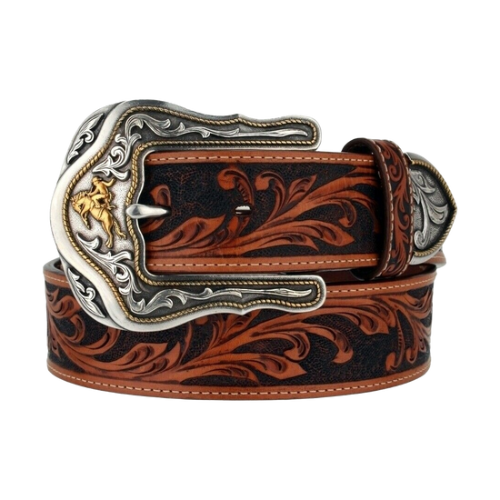 12. Tony Lama Men's Tan Westerly Ride Tooled Western Belt C41514