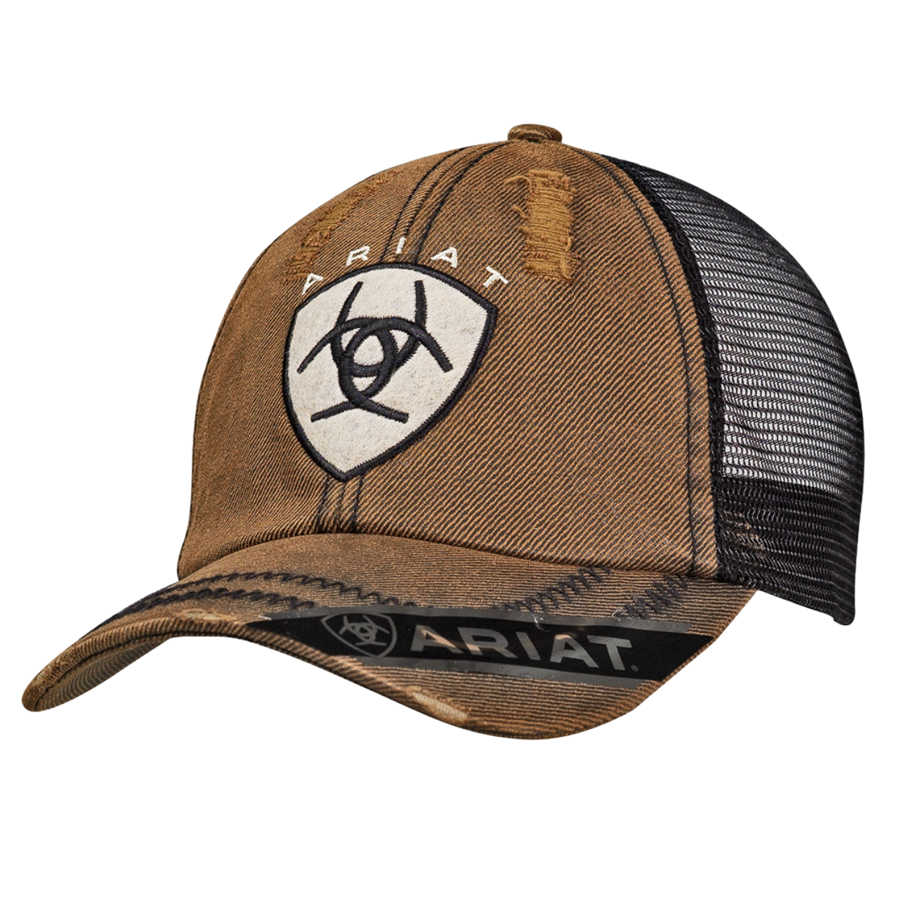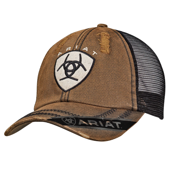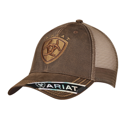 Ariat Brown OilSkin with Mesh Black Velcro Closure Ball Cap 1515602