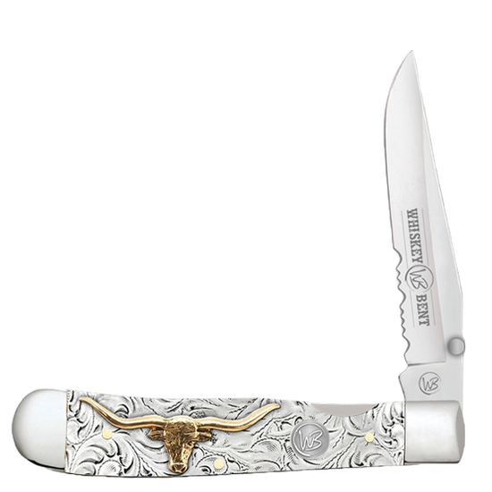 Sold OutWhiskey Bent® Burnt Bone Bull Cutter Pocket Knife WB42-19