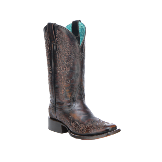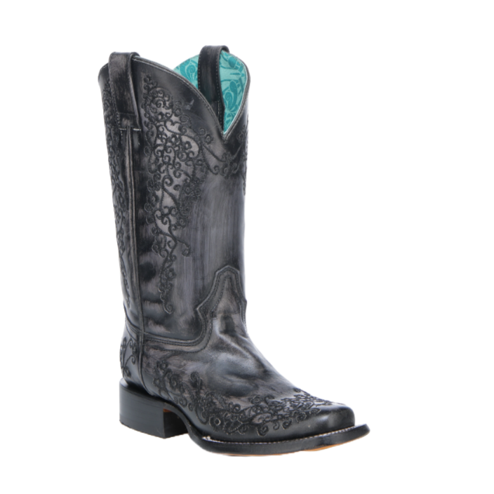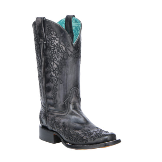 Corral Ladies Laser Embroidery & Studs Black & Wine Western Boots Z5424
