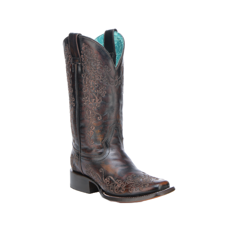 Corral Men's Brown Caiman Embroidery & Patchwork Wide Square Toe Boot L8011