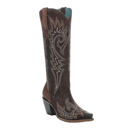 Corral Ladies Yellow Feathers Crackled Overlay Western Tall Boots A4765