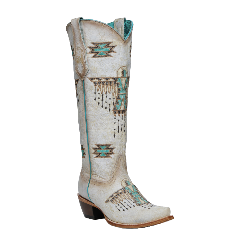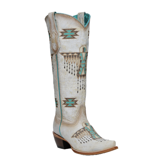 Macie Bean Ladies Natural Station White & Tan Western Tall Boots M9531