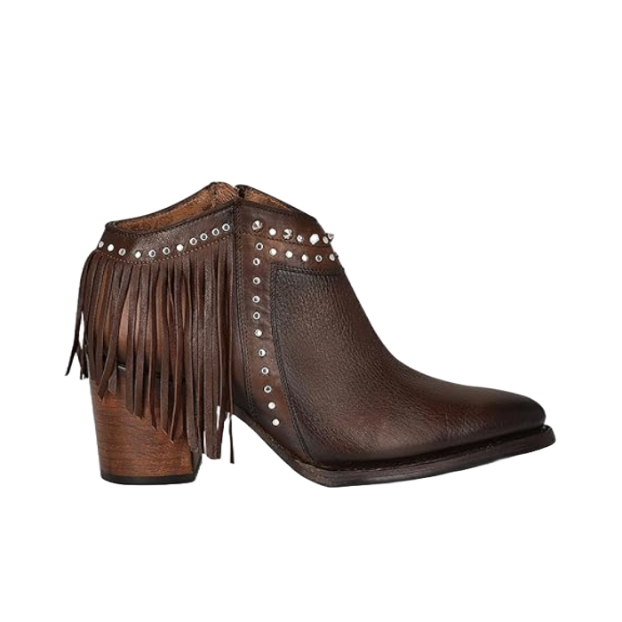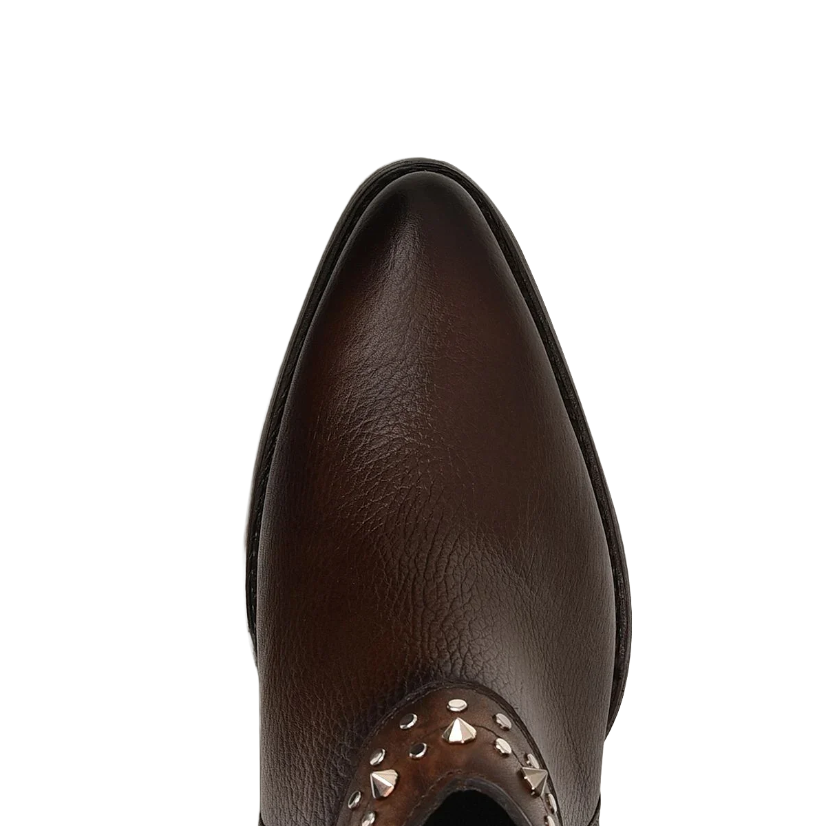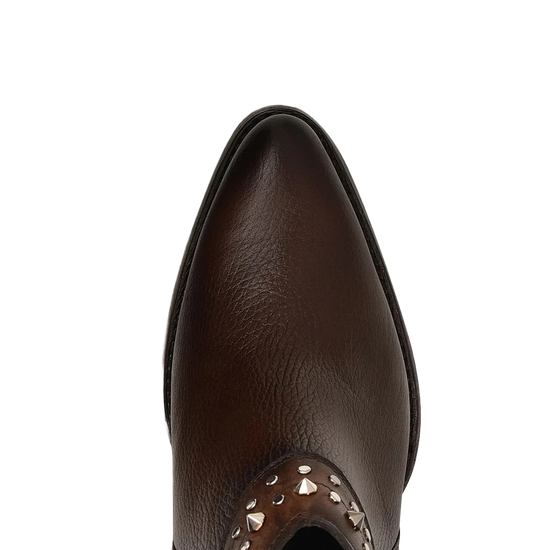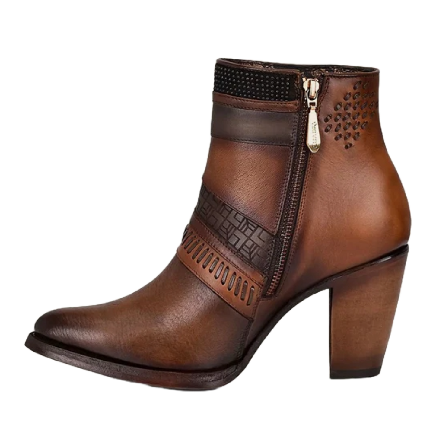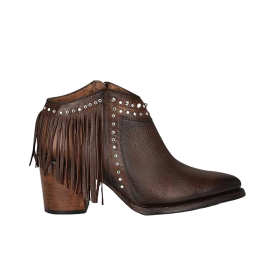 Cuadra Ladies Studded Lambskin Cafe Brown Western Ankle Bootie CC253