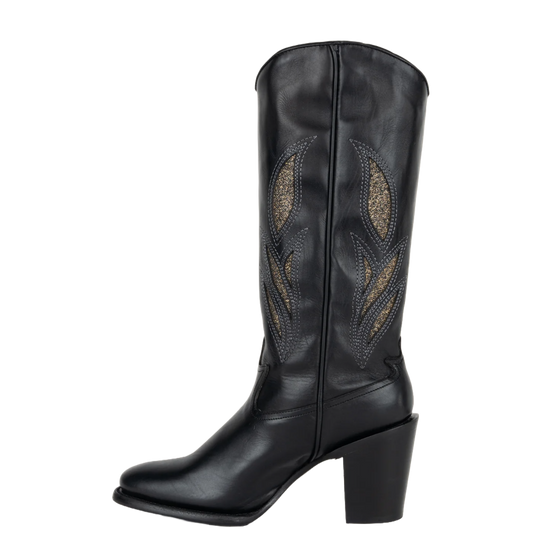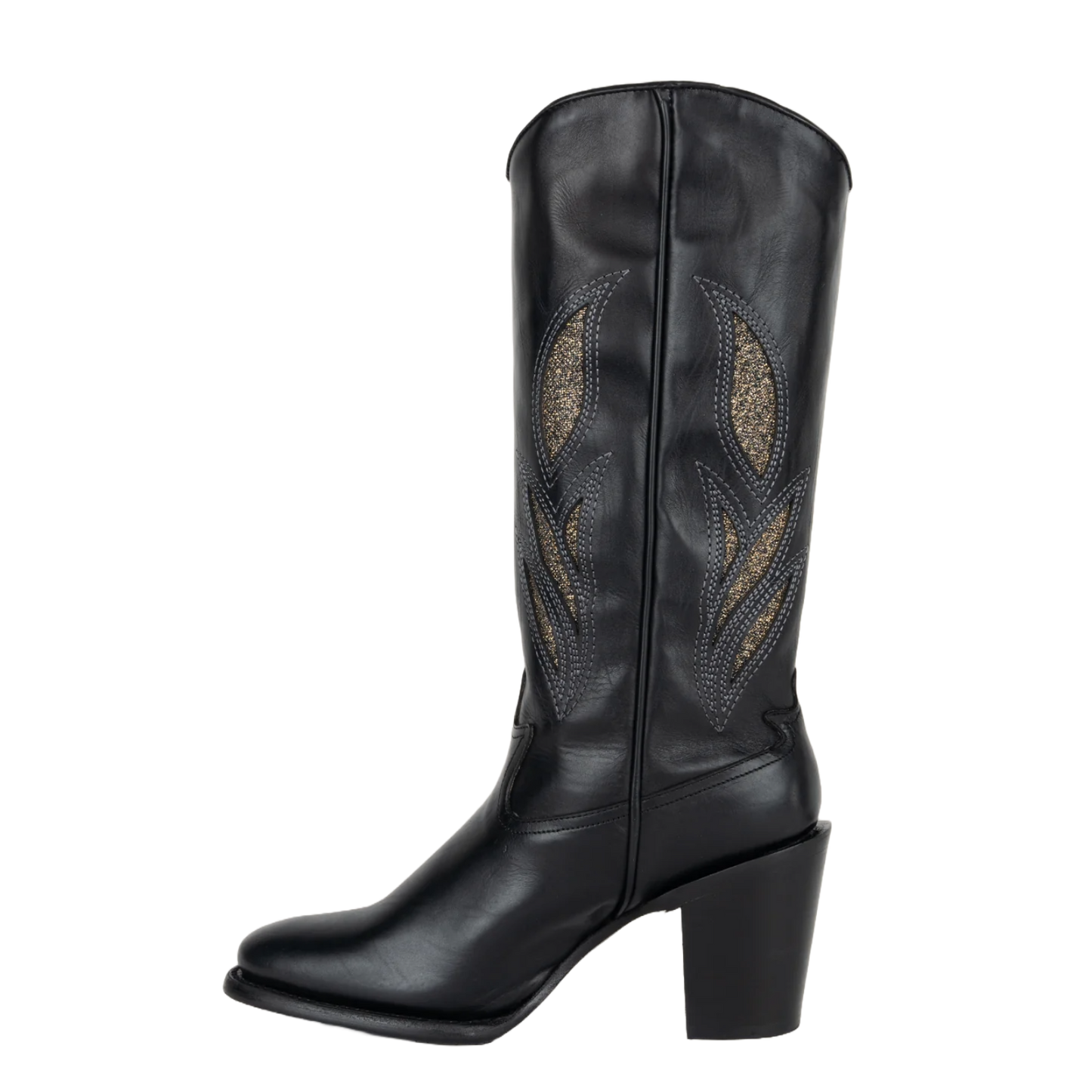 Cuadra Men's Deer Laser & Embroidery Narrow Square Toe Black Boots CU587