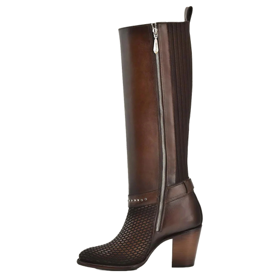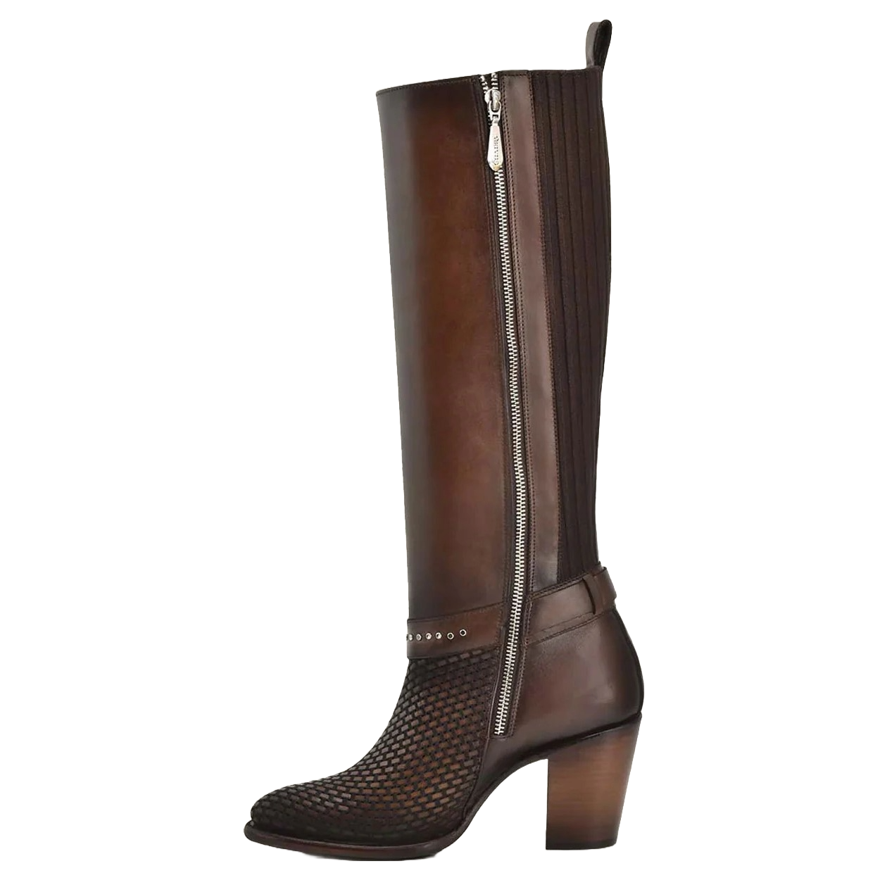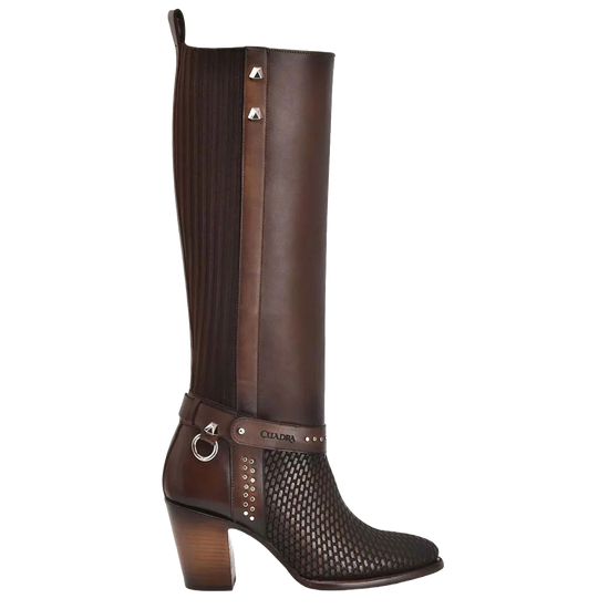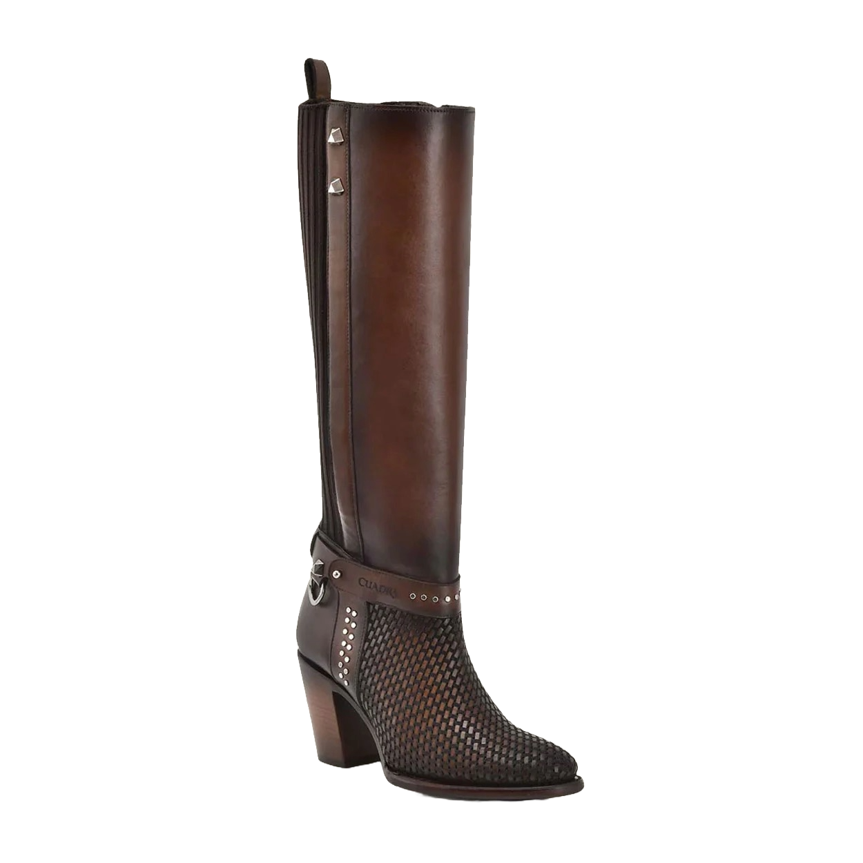 Cuadra Ladies Woven & Studded Tall Chocolate Brown Western Boot CC260