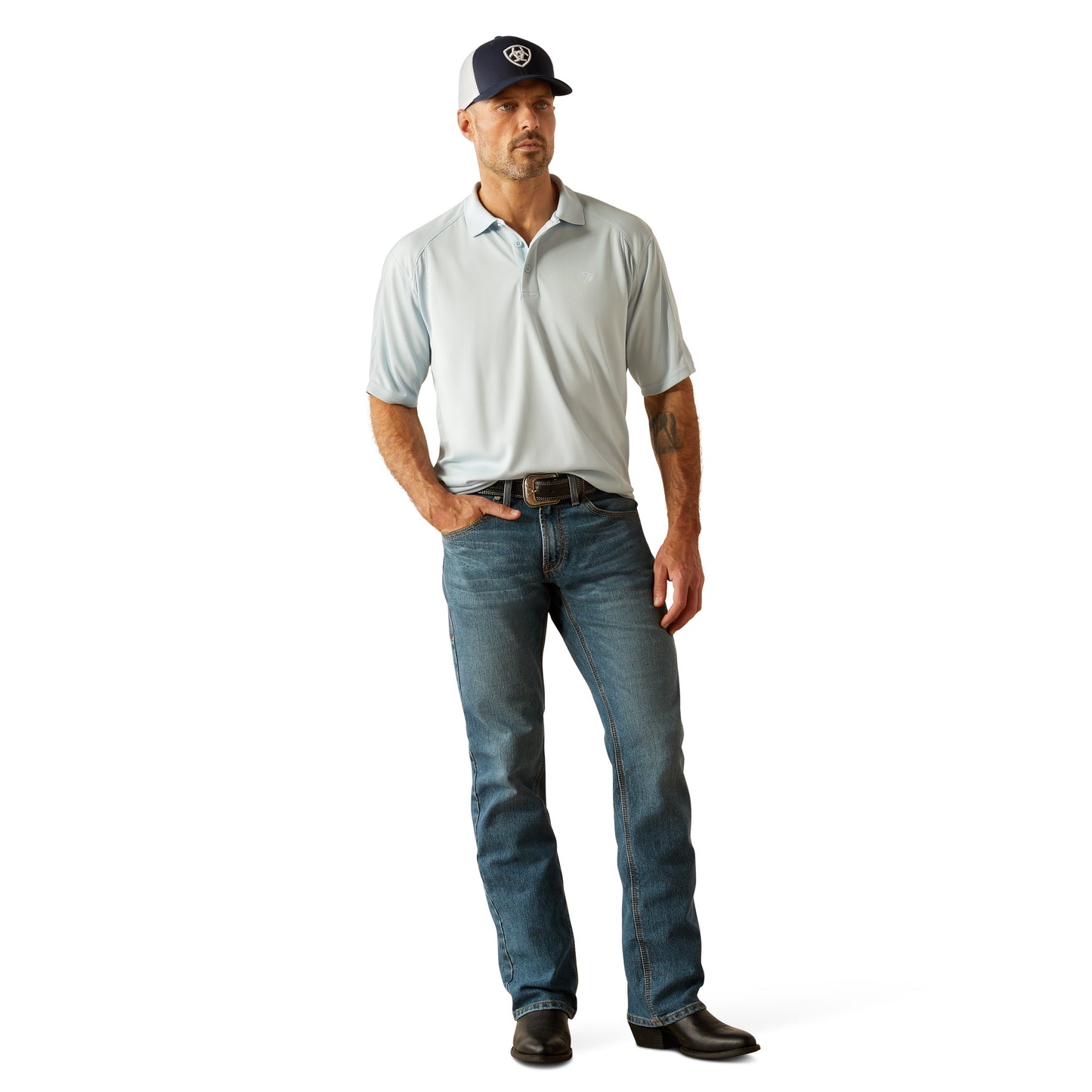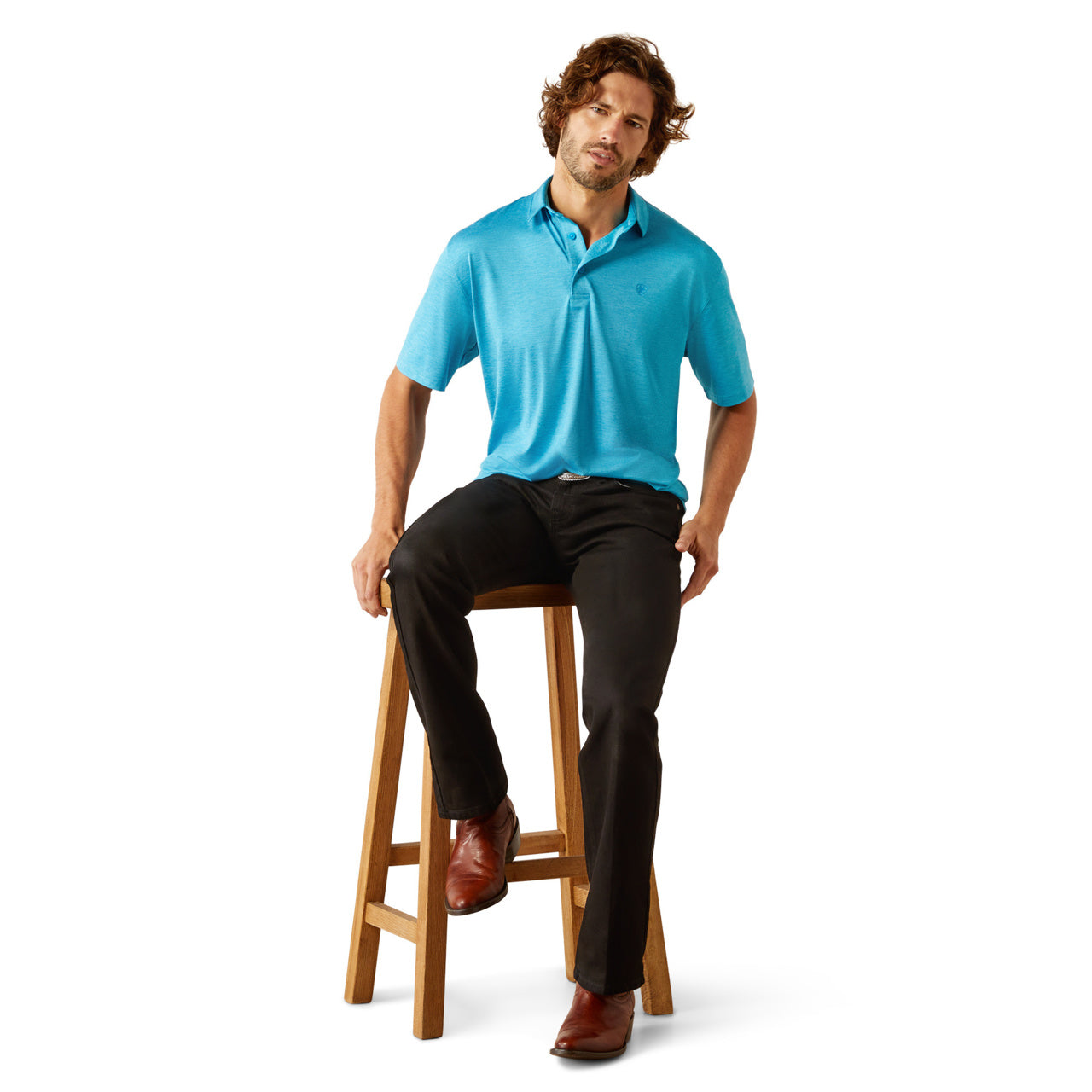 Ariat Men's Charger 2.0 Fitted Aqua Polo Shirt 10058779