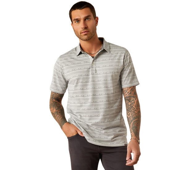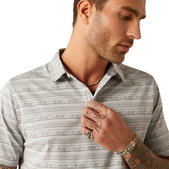 Ariat Men's 360 Airflow Grey Micro Chip Print Polo Shirt 10058838
