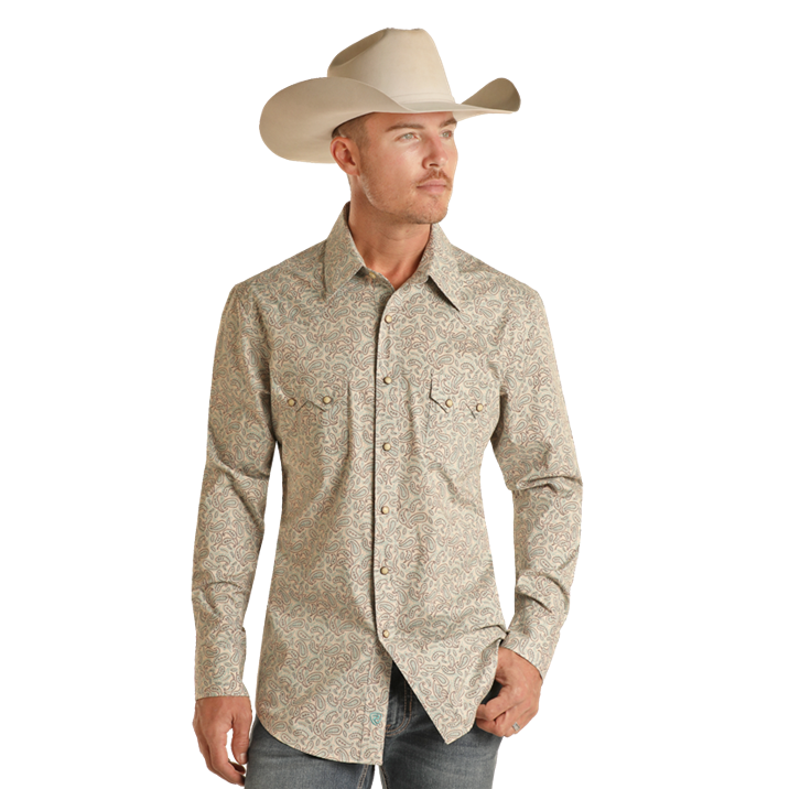Rock & Roll Men's Camel Paisley Print Snap Shirt RMN2S07573
