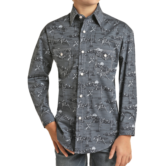 SaleRock & Roll Cowboy® Youth Boy's Conversational Snap Shirt RRBSOSR08X