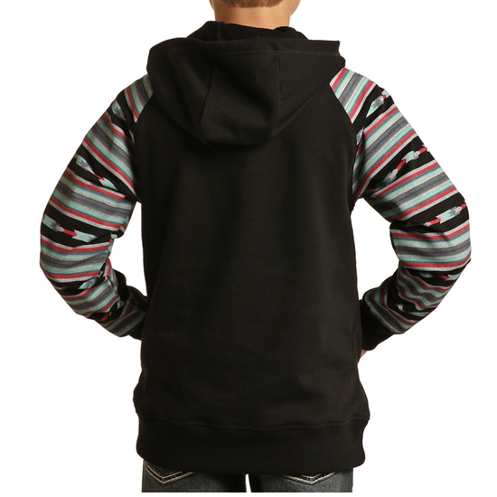 SaleRock & Roll Cowboy® Youth Boy's Black Serape Sleeve Hoodie RRBT94R0JB