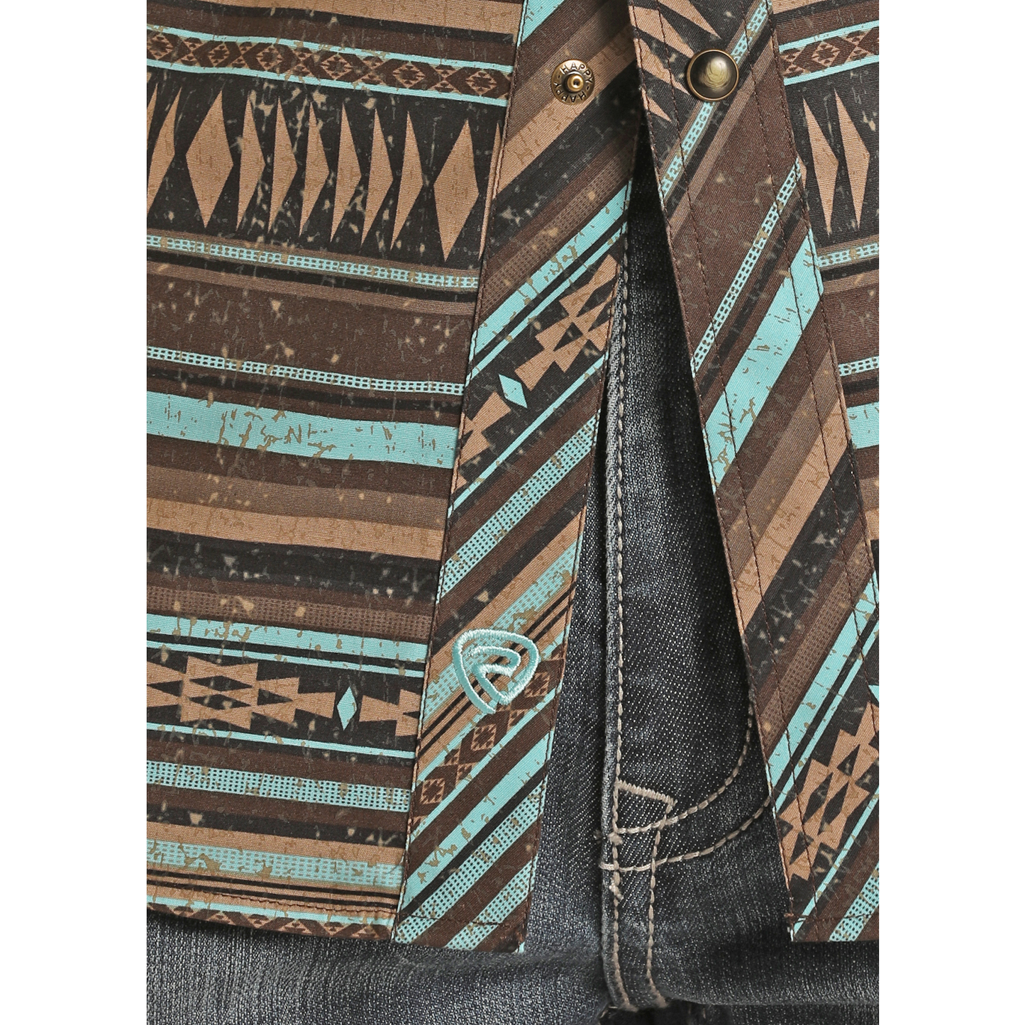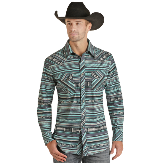Rock & Roll Men's Teal Aztec Print Snap Button Shirt BMN2S07648