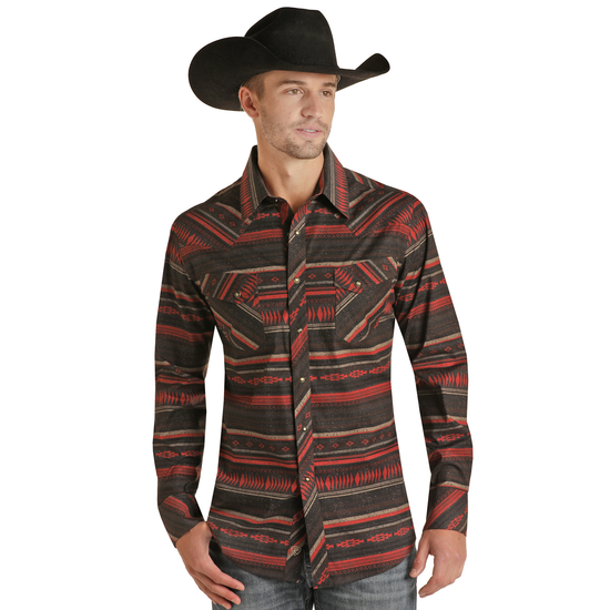 SaleSold OutPanhandle Men's Long Sleeve Aztec Burgundy Snap Shirt RRMSOSRZ1J-62