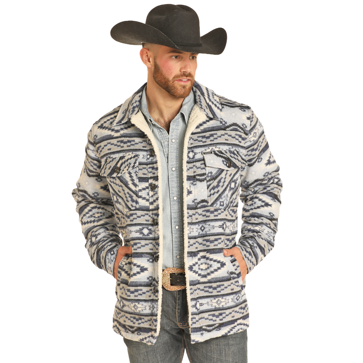 Rock & Roll Denim Men's Aztec Brushed Blue Jacquard Shirt Jacket BM92C04341