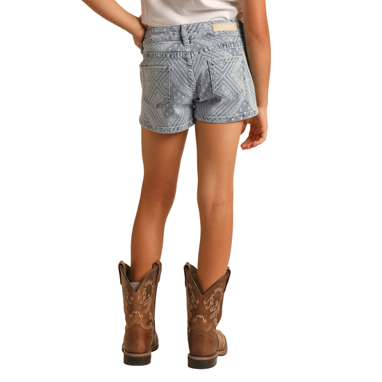 Rock & Roll Denim Girls Bandana Printed Denim Shorts RRGD68R0UF