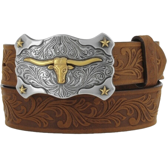Tony Lama Children's Little Texas Aged Bark Tooled Leather Belt C60119