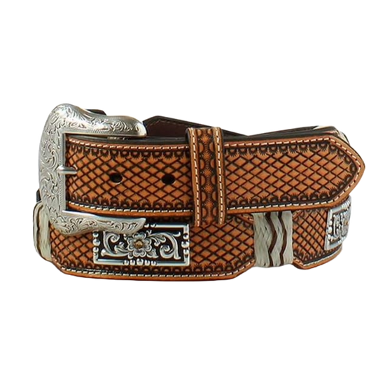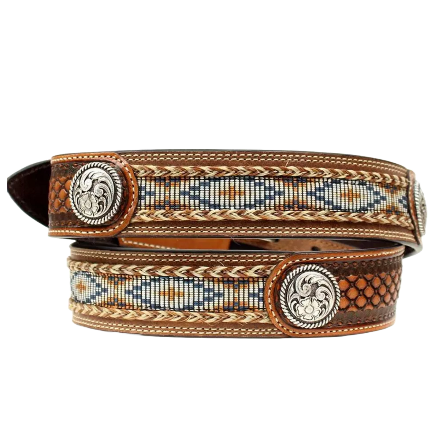 Nocona Men's Embroidered Southwest Inlay Brown Western Belt N210004644