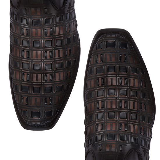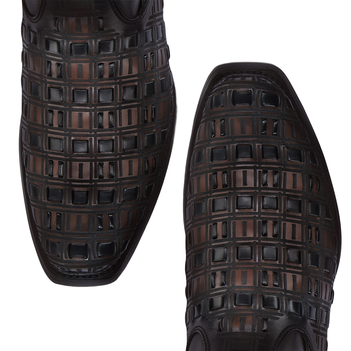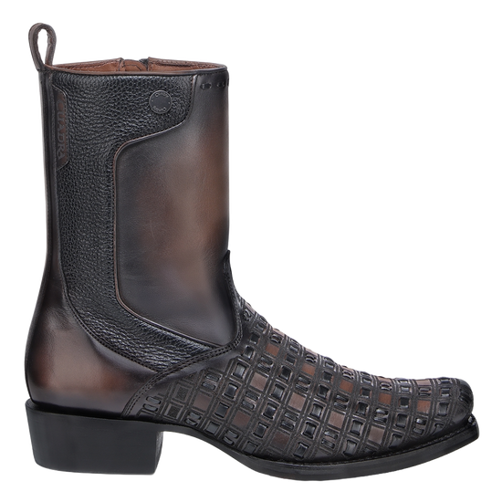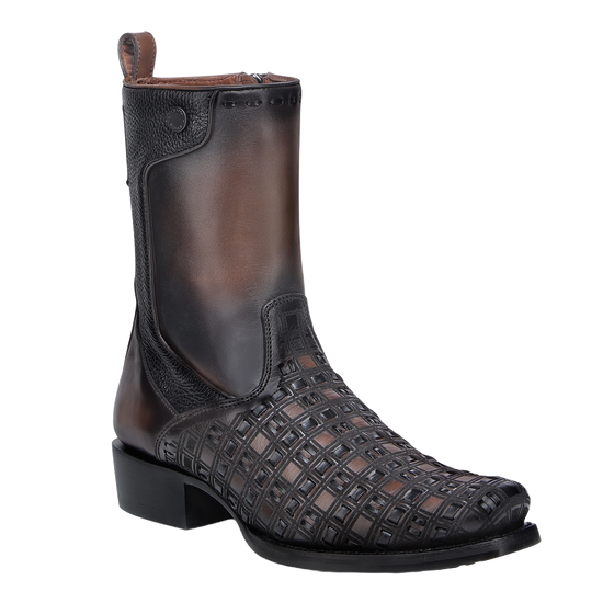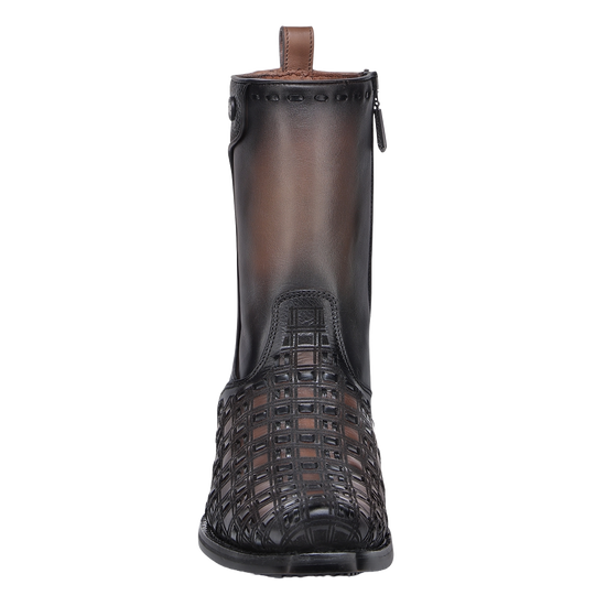 Corral Men's Brown Caiman Embroidery & Patchwork Wide Square Toe Boot L8011