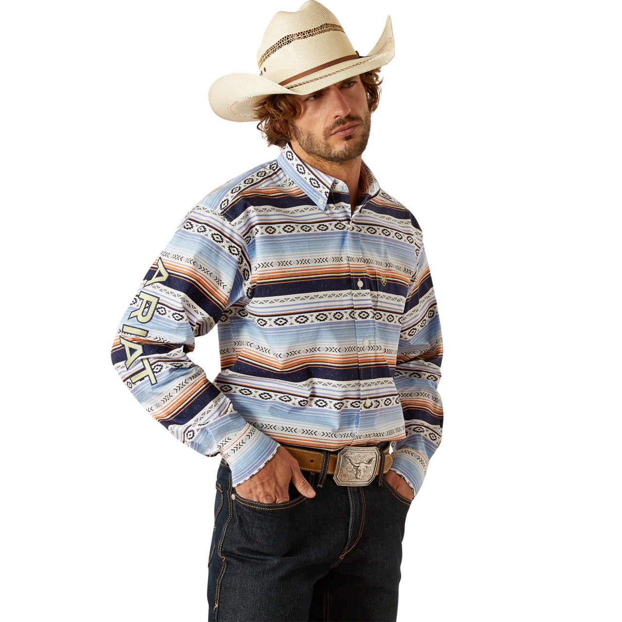 Ariat Men's Charger 2.0 Blue Southwest Printed Polo Shirt 10054909