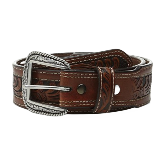 Ariat Men's Floral Tan Embossed Logo Buckle Belt A1042208