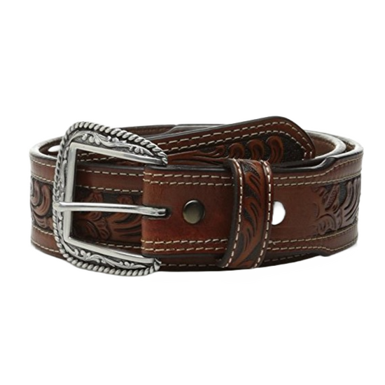 Ariat Men's Brown Crocodile Print Floral Embossed Tab Belt A1021202