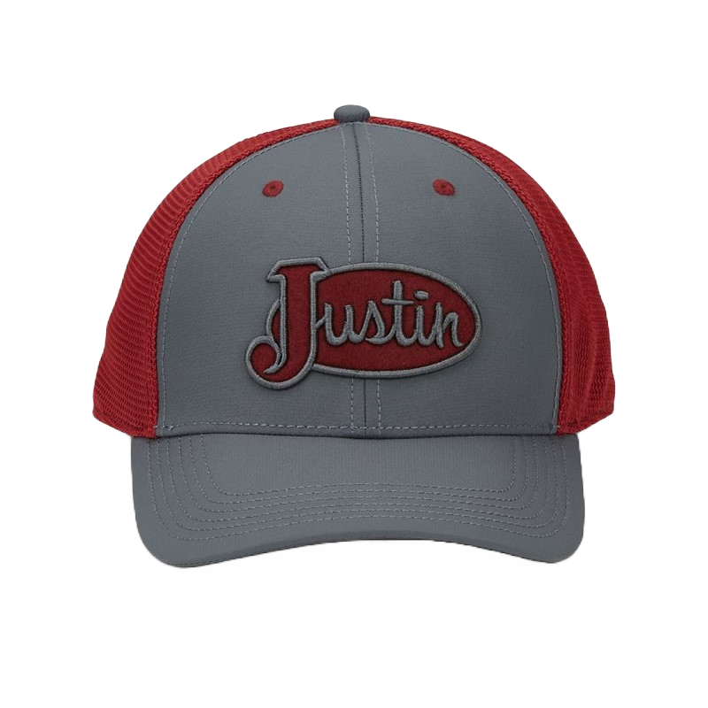 Justin Men's Classic Logo Grey & Red Mesh Snapback Cap JCBC725-GRY