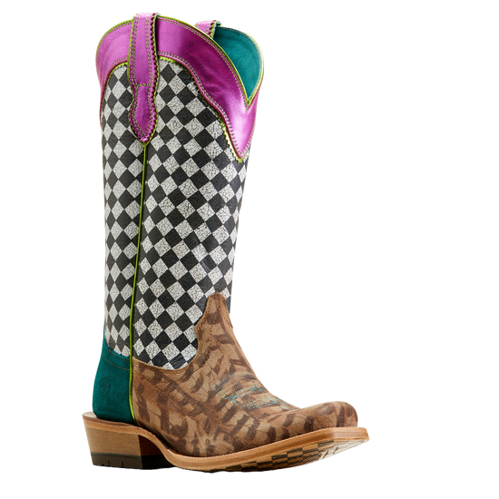 Ariat Hybrid Ranch Time Acorn Brown & Teal Boots 10053661