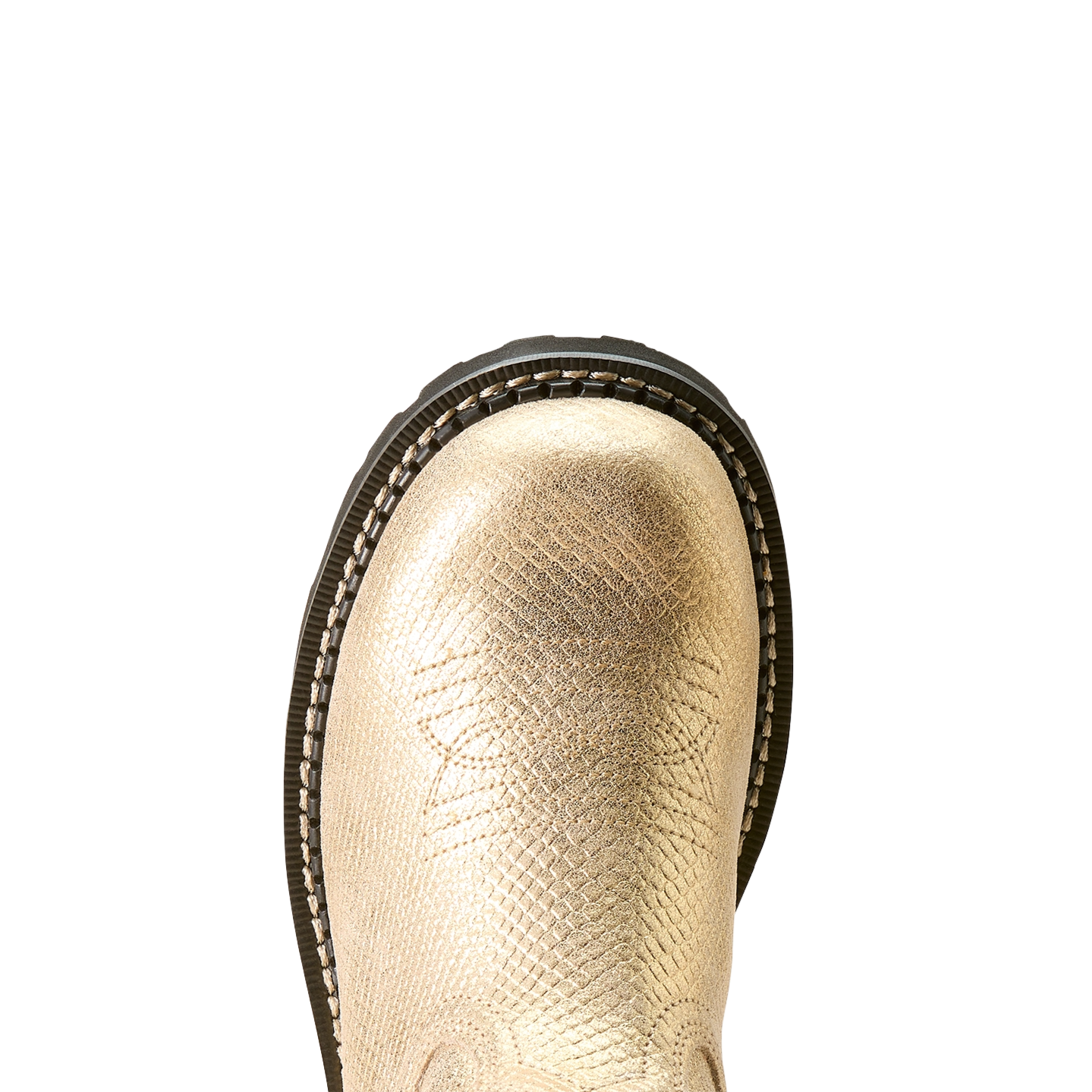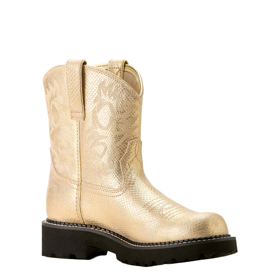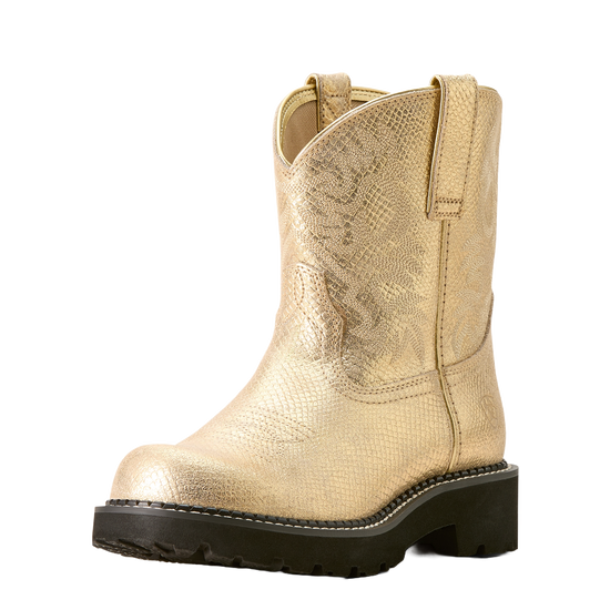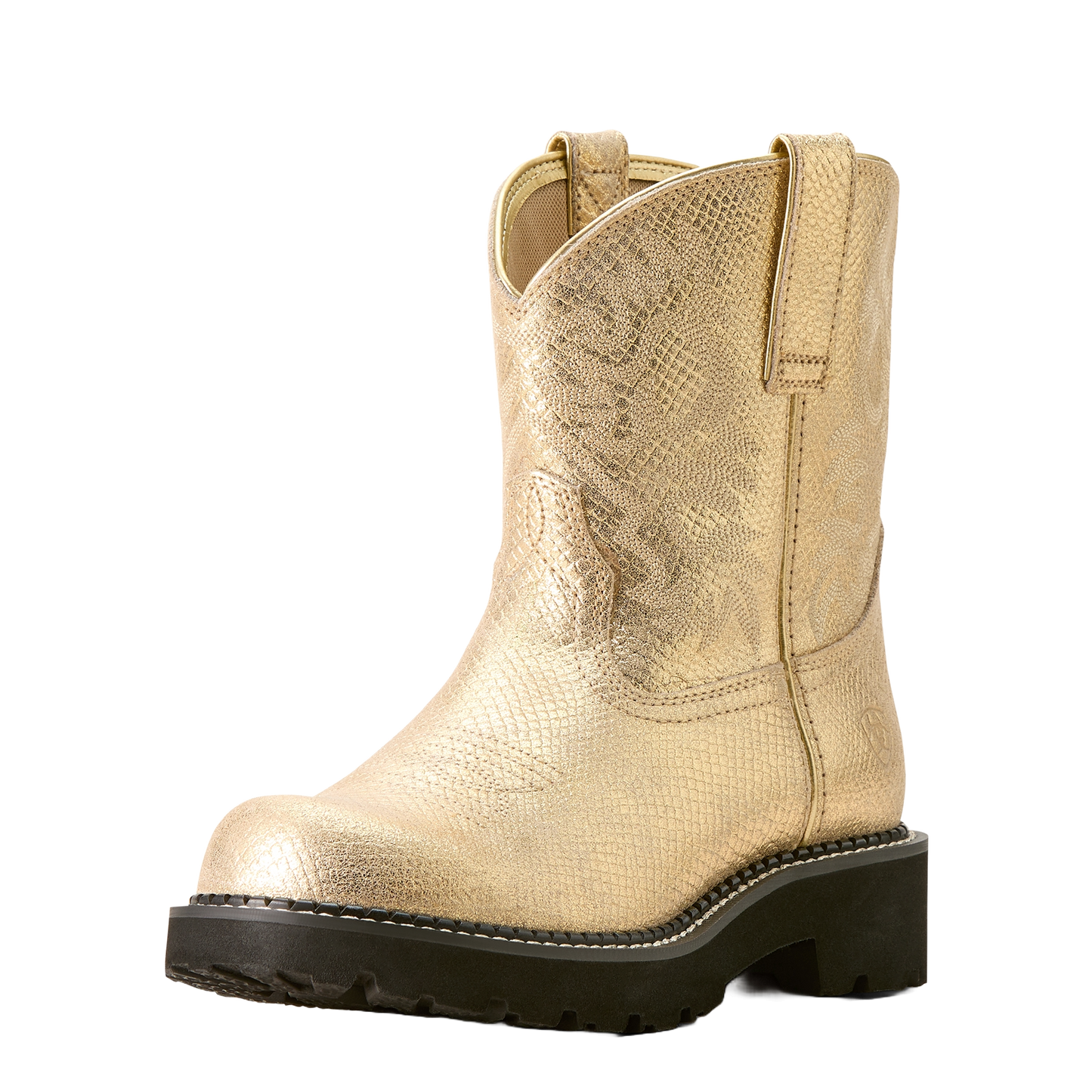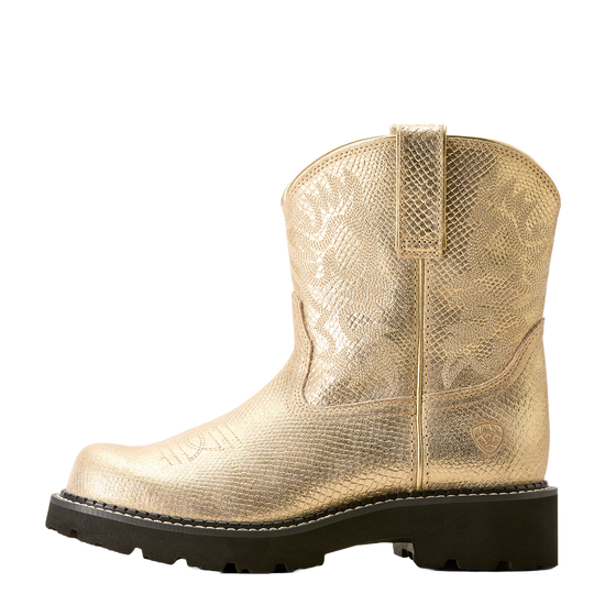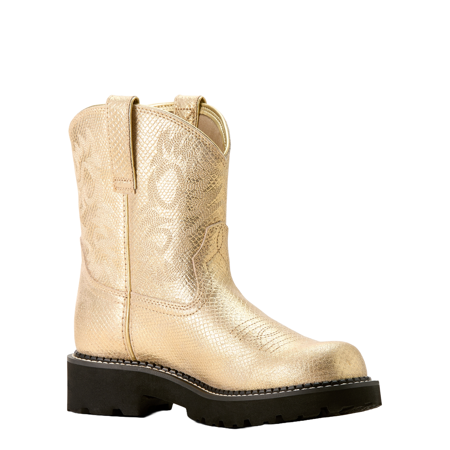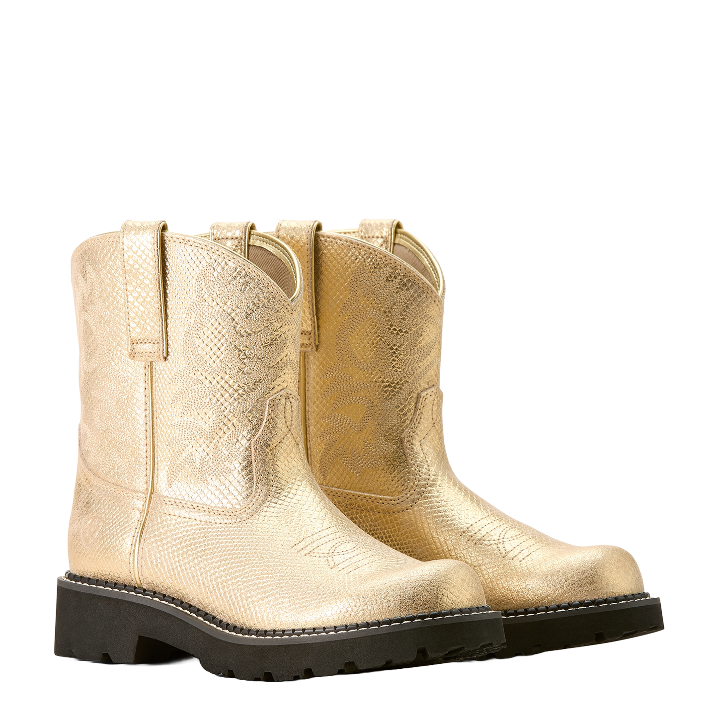 Quick View Sale Loading... Loading... Loading... Loading... Loading... Loading... Loading... Ariat Ladies Fatbaby Gilded Lizard Emboss Western Boot 10053737 $ 69.97 $ 119.95 Style number: 10053737. Gilded lizard emboss leather. Four row stitch pattern. 8" shaft height. Fatbaby toe shape. Single stitch welt construction. 4LR™ technology provides lightweight support and stability. Everlon™ sole is lightweight and flexible yet wear resistant. Removable comfort insole. Mesh lining. 1.75 heel height. Size 5.5 6 6.5 7 7.5 8 8.5 9 9.5 10 11 Width Medium (B, M) Color Gold 5.5 / Medium (B, M) / Gold - Sold Out 6 / Medium (B, M) / Gold - Sold Out 6.5 / Medium (B, M) / Gold - $ 69.97 7 / Medium (B, M) / Gold - $ 69.97 7.5 / Medium (B, M) / Gold - $ 69.97 8 / Medium (B, M) / Gold - Sold Out 8.5 / Medium (B, M) / Gold - Sold Out 9 / Medium (B, M) / Gold - Sold Out 9.5 / Medium (B, M) / Gold - Sold Out 10 / Medium (B, M) / Gold - Sold Out 11 / Medium (B, M) / Gold - Sold Out Quantity - + You can't add more of this item to the cart Add to cart This item is a recurring or deferred purchase. By continuing, I agree to the cancellation policy and authorize you to charge my payment method at the prices, frequency and dates listed on this page until my order is fulfilled or I cancel, if permitted. View all details Ariat Ladies Fatbaby Gilded Lizard Emboss Western Boot 10053737 $ 119.95 $ 69.97 Sale