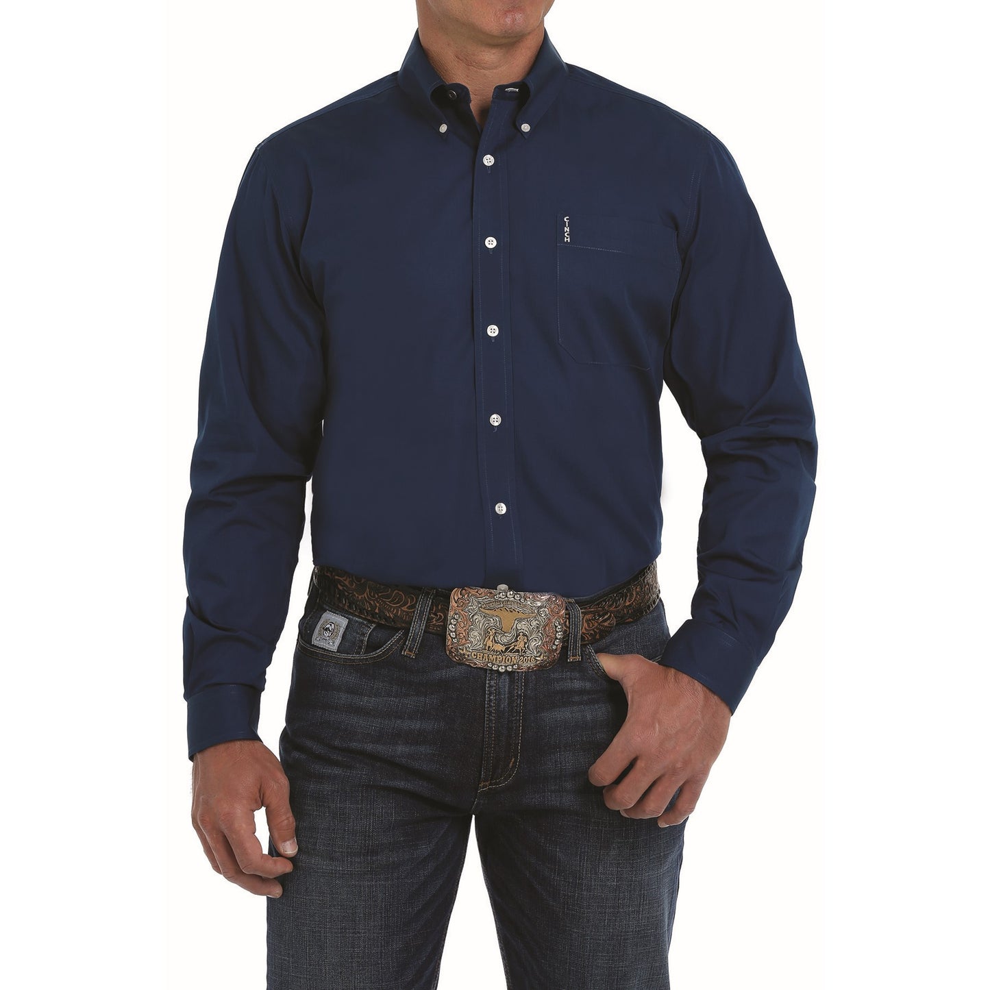 Cinch Men's Solid Navy Long Sleeve Button Down Shirt MTW1104667