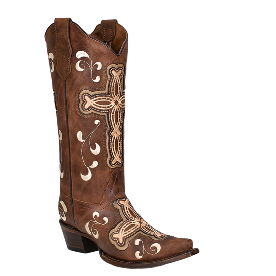 Circle G by Corral Ladies Embroidered Cinnamon Brown Snip Toe Boots L6014