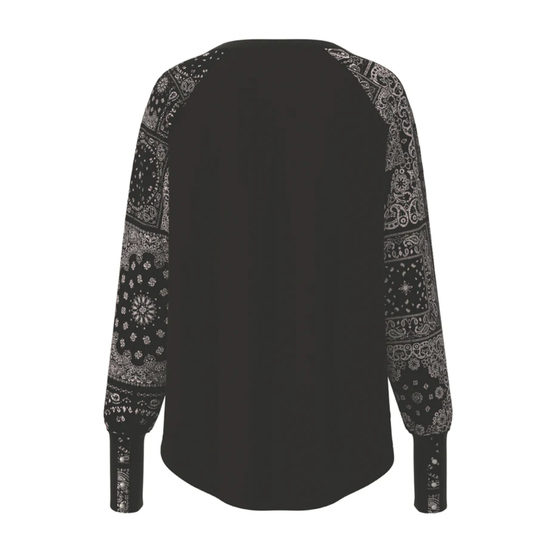 Hooey Ladies "Henley" Black Bandana Thermal Long Sleeve Shirt HT1692BKWH