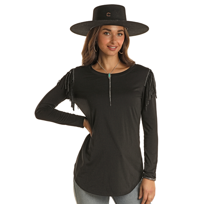 Panhandle Ladies Studded Fringe Trim Black Swing Top LW22T02407