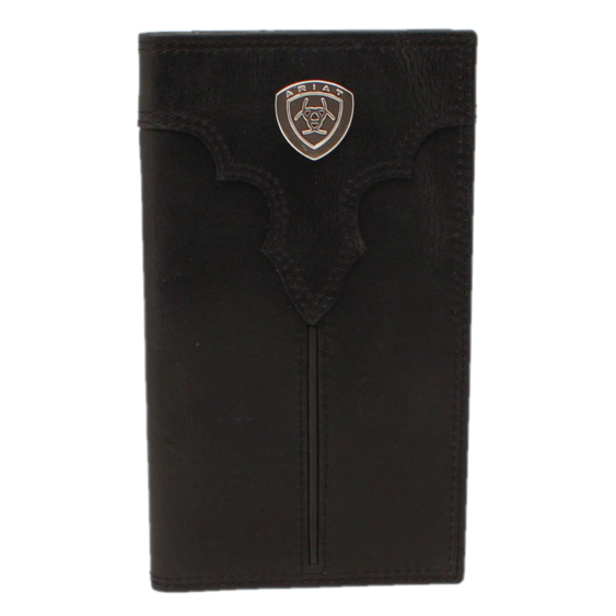 Ariat® Men's Embossed Logo Black Checkbook Rodeo Wallet A3548601