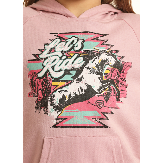 Rock & Roll Cowgirl Kid's Let's Ride Horse Pink Hoodie RRGT94R079-68