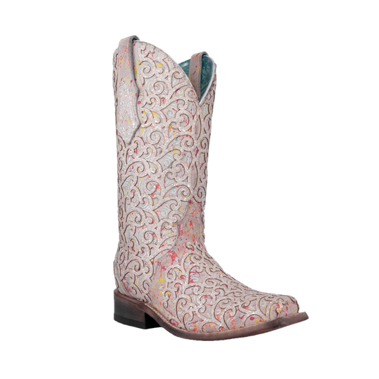 Corral Ladies Woven Overlay White Glitter Western Boots A4524