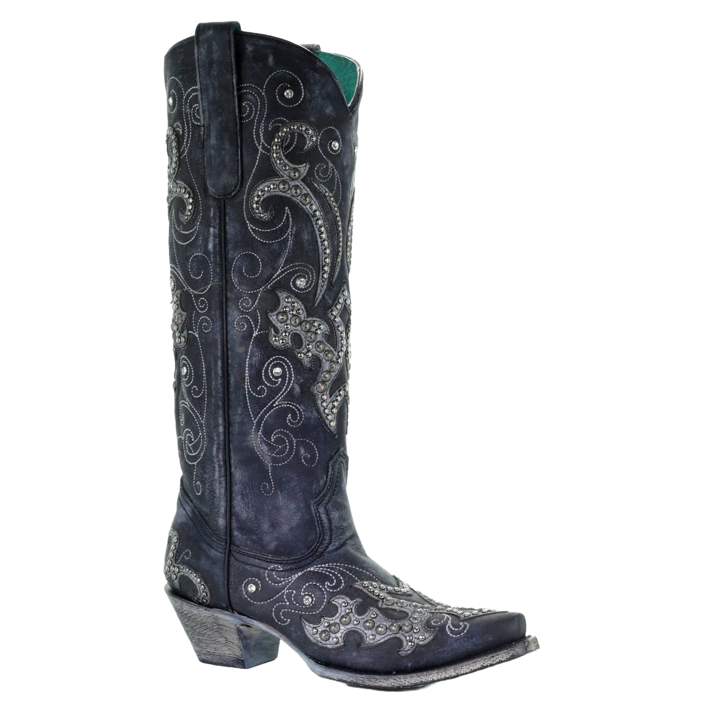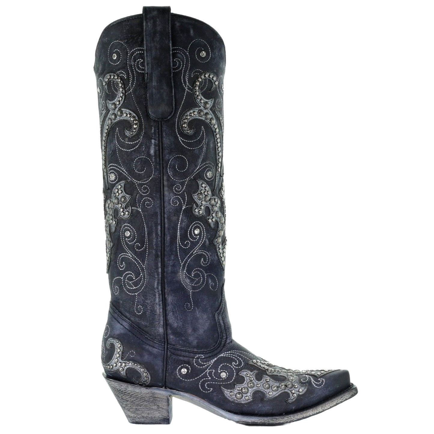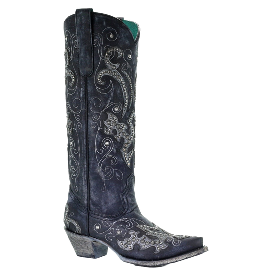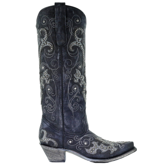 10. Corral Ladies Black Overlay Emroidery Stud & Crystals Tall Boots A3637