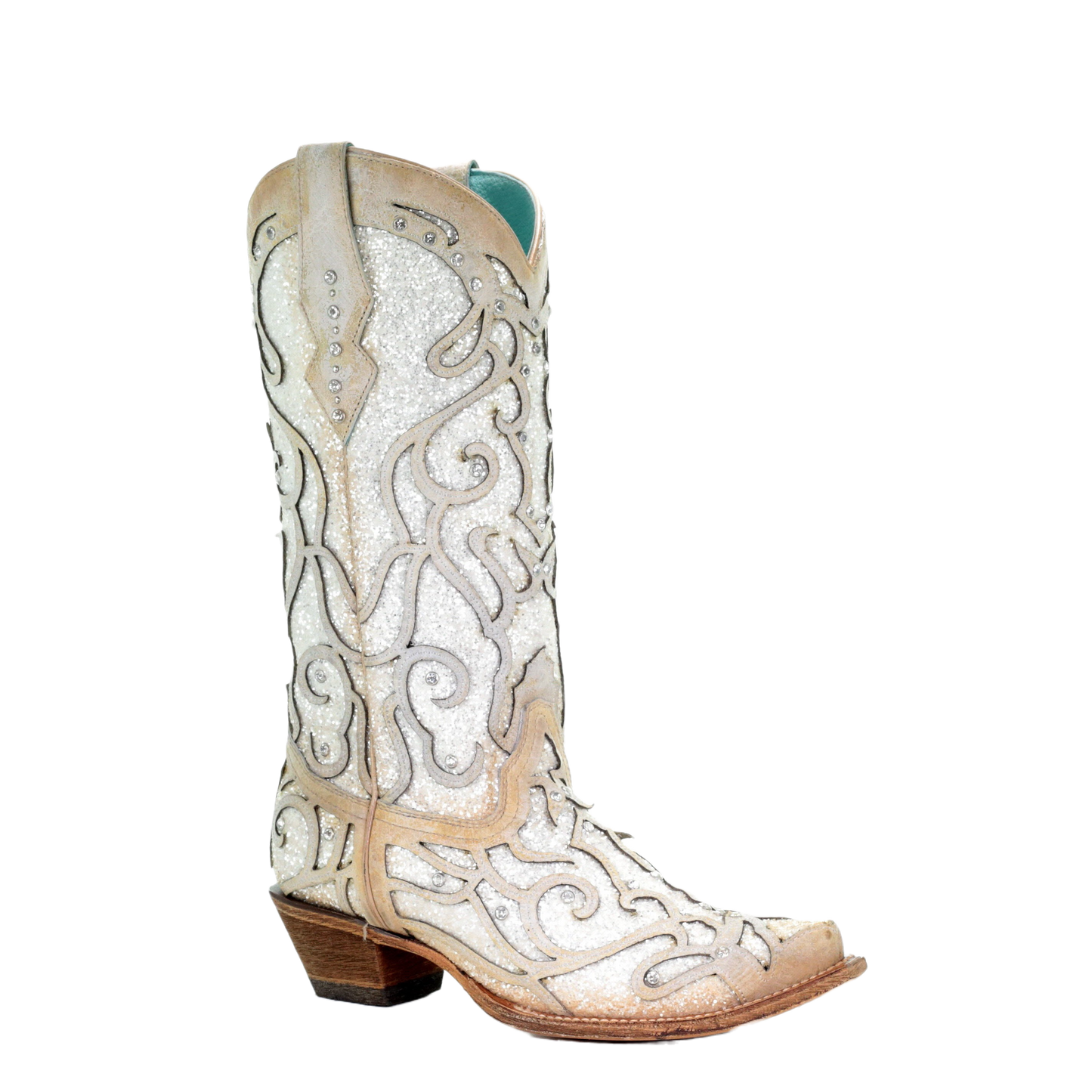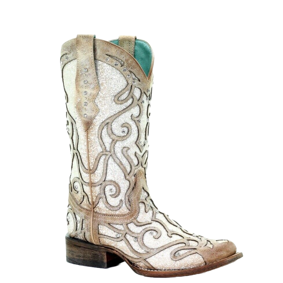 14. Corral Ladies White Glitter Inlay/Crystals Sniped Toe Boot C3434