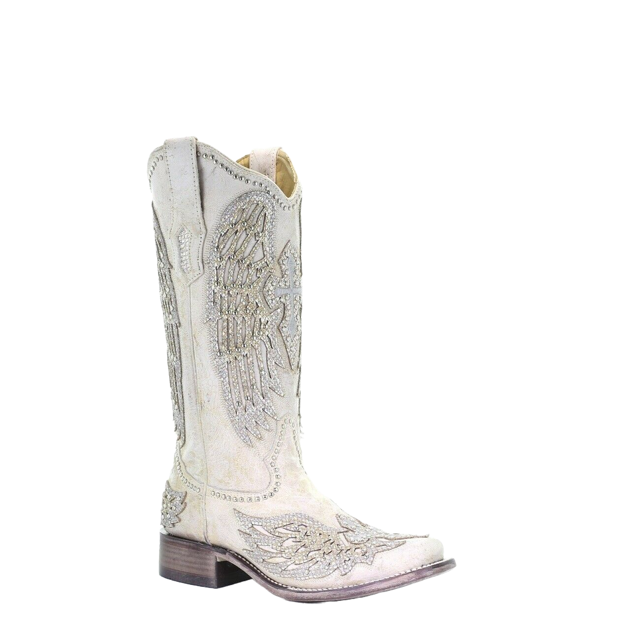 13. Corral Ladies Bone & White Glitter Inlay & Studs Boots C3482