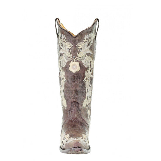 2. Corral Ladies Lisa Snip Distressed Brown Bone Embroidery Boots A1094