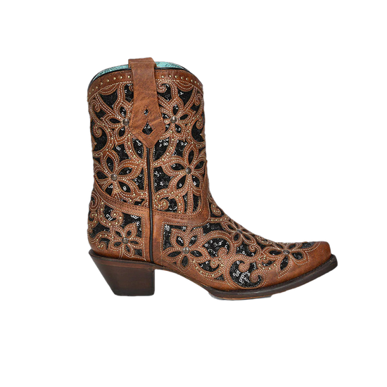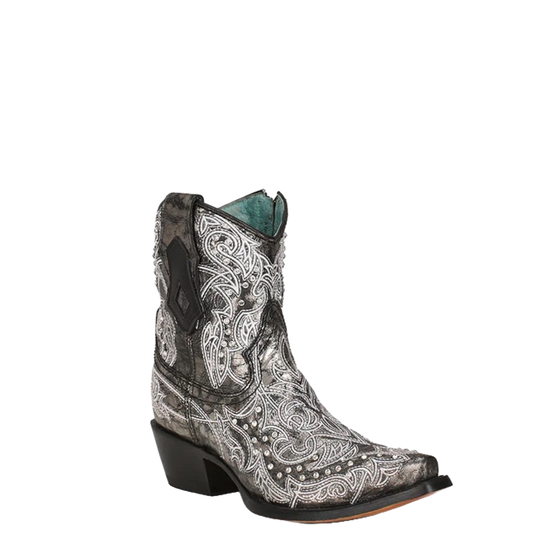 Corral Ladies Bronze Embroidery & Crystals Snip Toe Ankle Boots C3922
