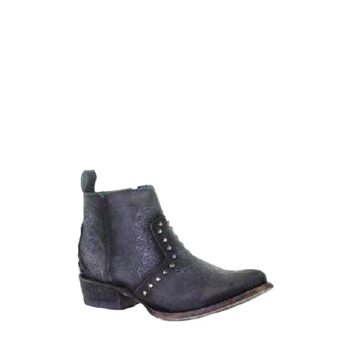 Corral Ladies Black Embroidery & Studs Round Toe Ankle Boots C3729