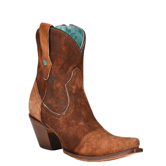 Corral Ladies Eudora Chocolate-Tan Lamb Abstract Shortie Boots C1064