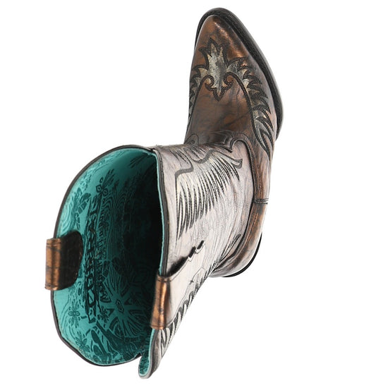 Corral Ladies Eudora Chocolate-Tan Lamb Abstract Shortie Boots C1064