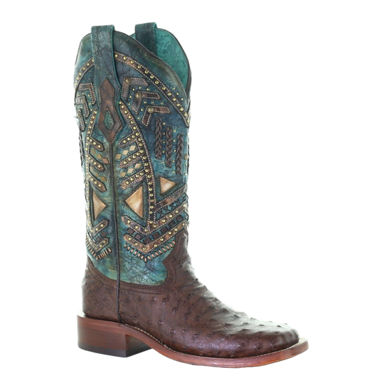 Corral Men's Navy Blue Cognac Ostrich Embroidery Boot A4401