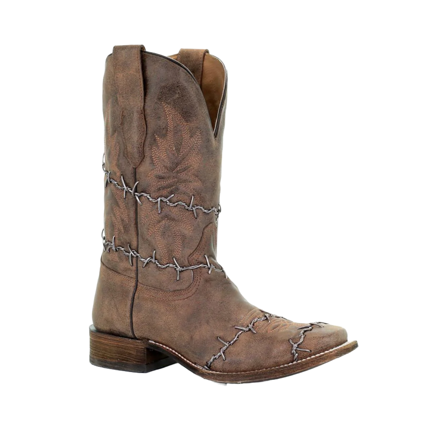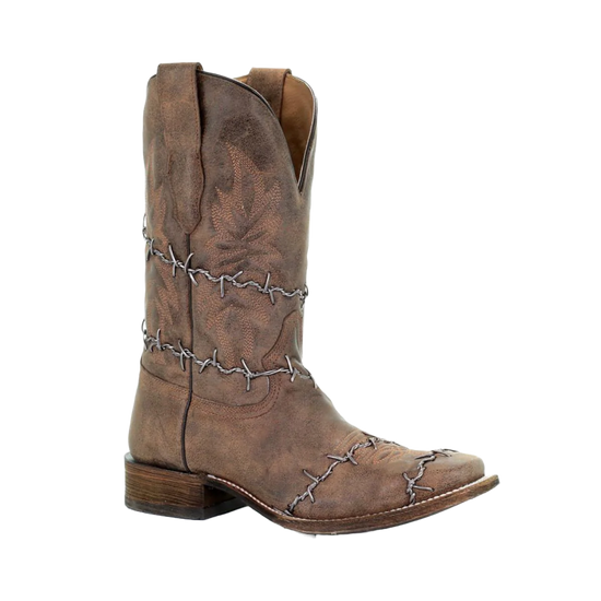 Corral Men's Brown Woven Barbed Wire Design Square Toe Boots A3532