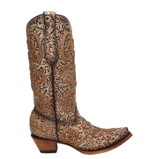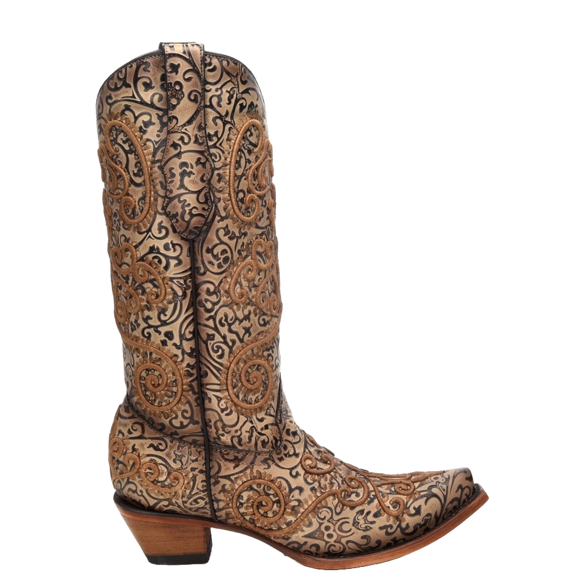 Corral Men's Honey & Grey Inlay & Embroidery Western Boot C3845