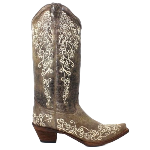 Corral Ladies Lisa Snip Distressed Brown Bone Embroidery Boots A1094