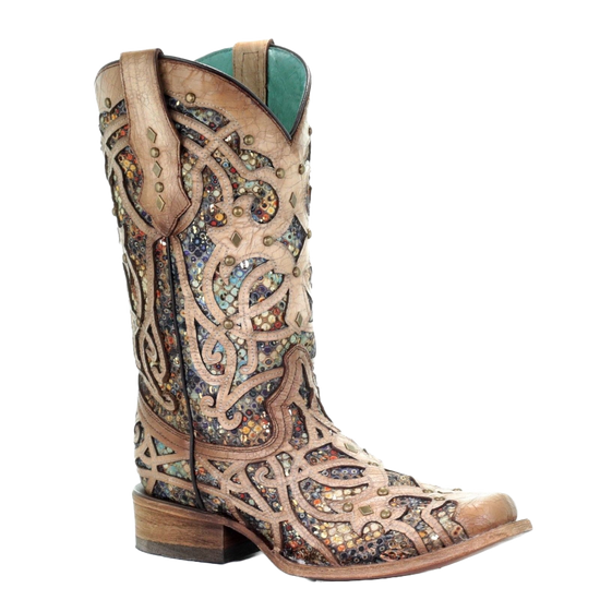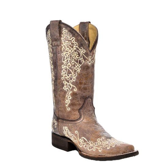 Corral Ladies Iconic Lisa Brown Crater Bone Embroidered Boots A2663