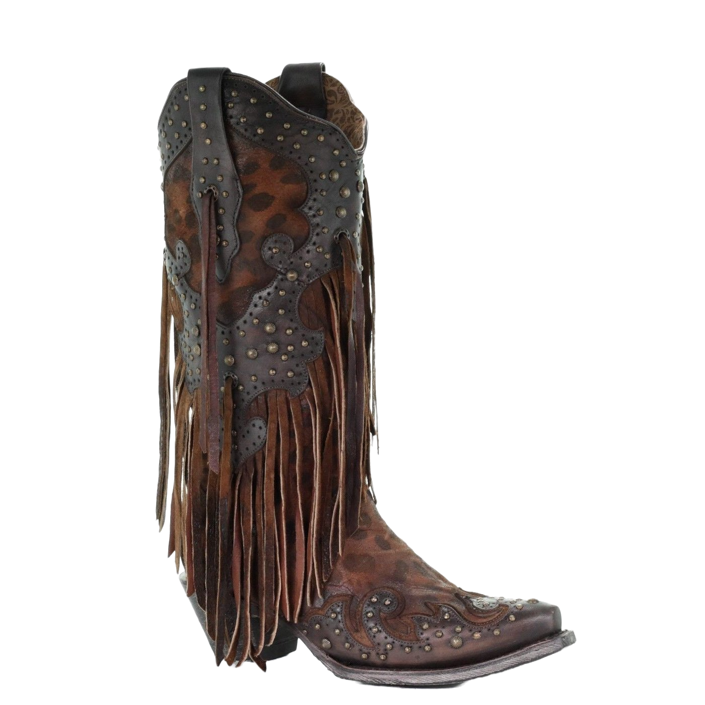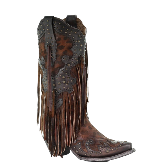 Corral Ladies Patricia Honey Goat Leopard Fringe & Studs Boots A3618