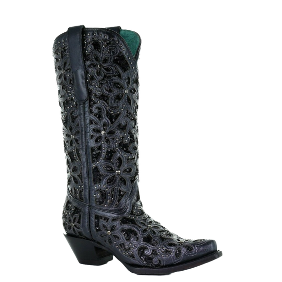 Corral Ladies Black Inlay Embroidery & Studs Boots A3752